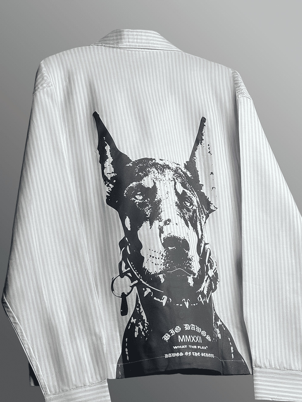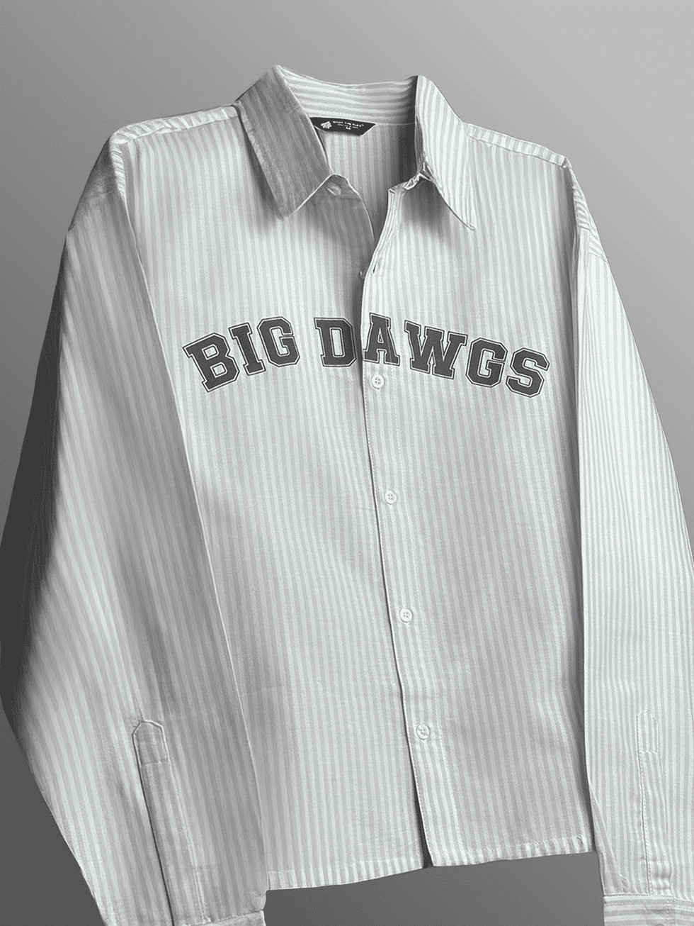 Big Dawgs Grey Striped Casual Shirt With Graphic Back Print
