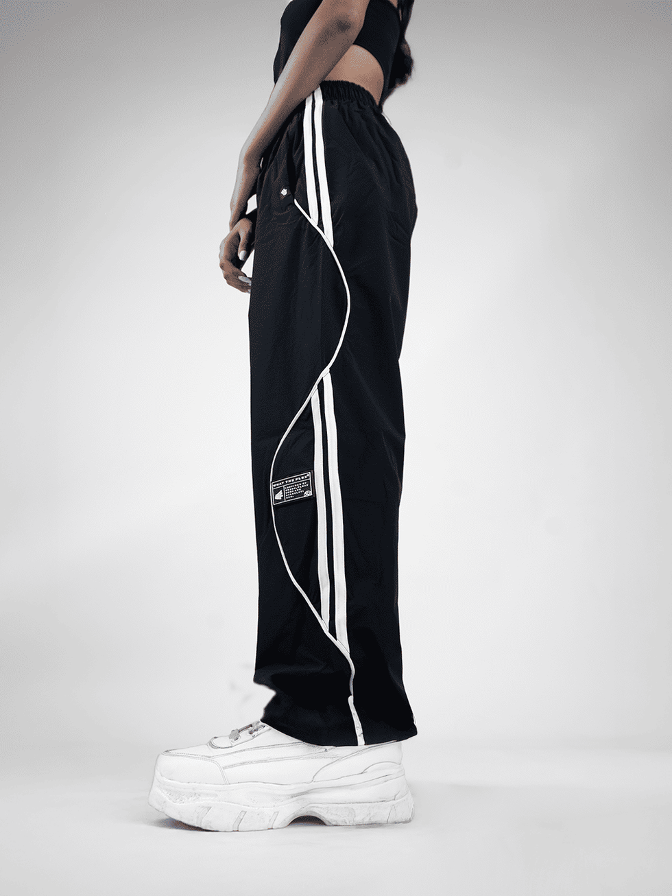 Black Arc Parachute Pants Lightweight Baggy Street Style Trousers