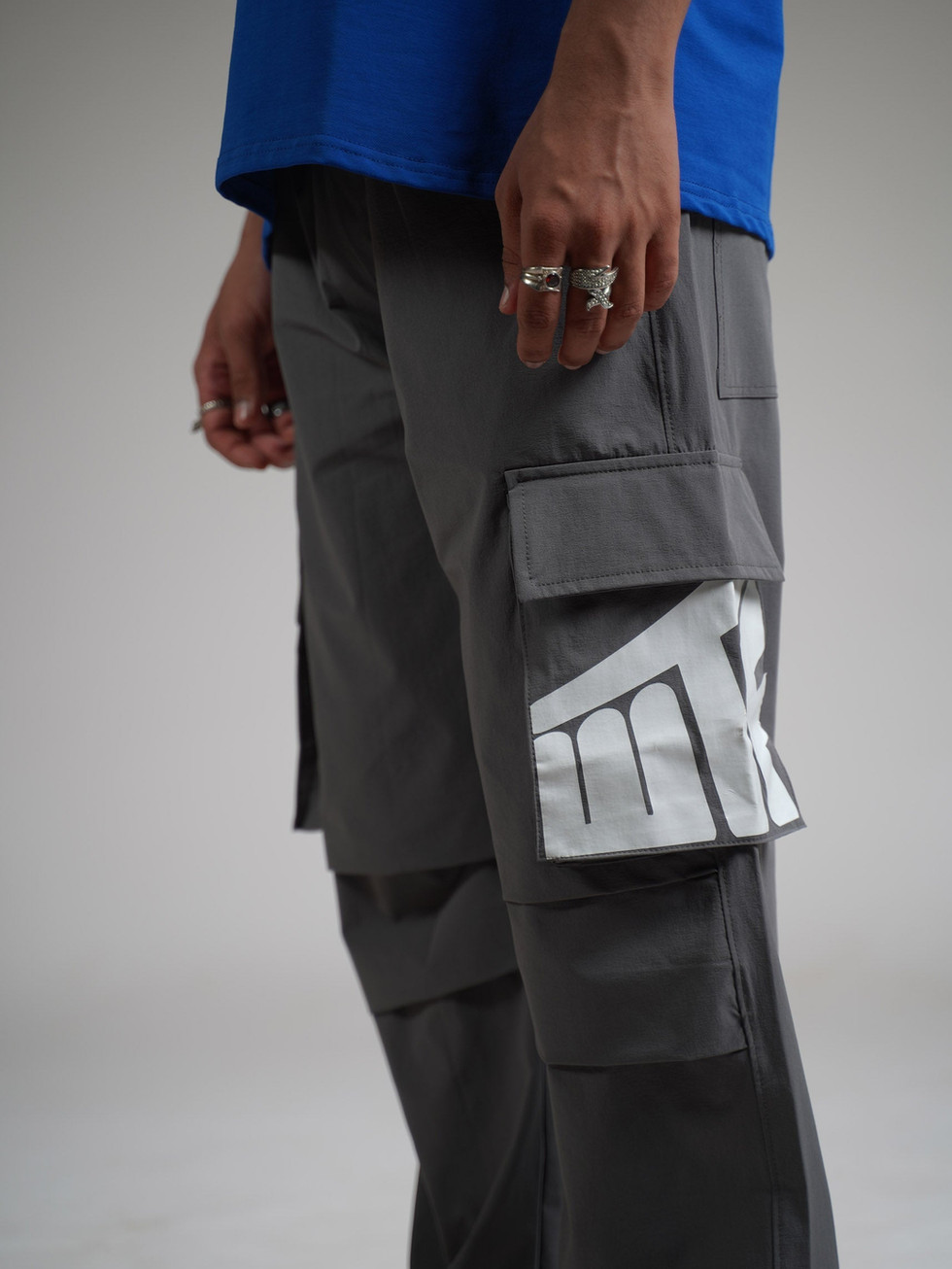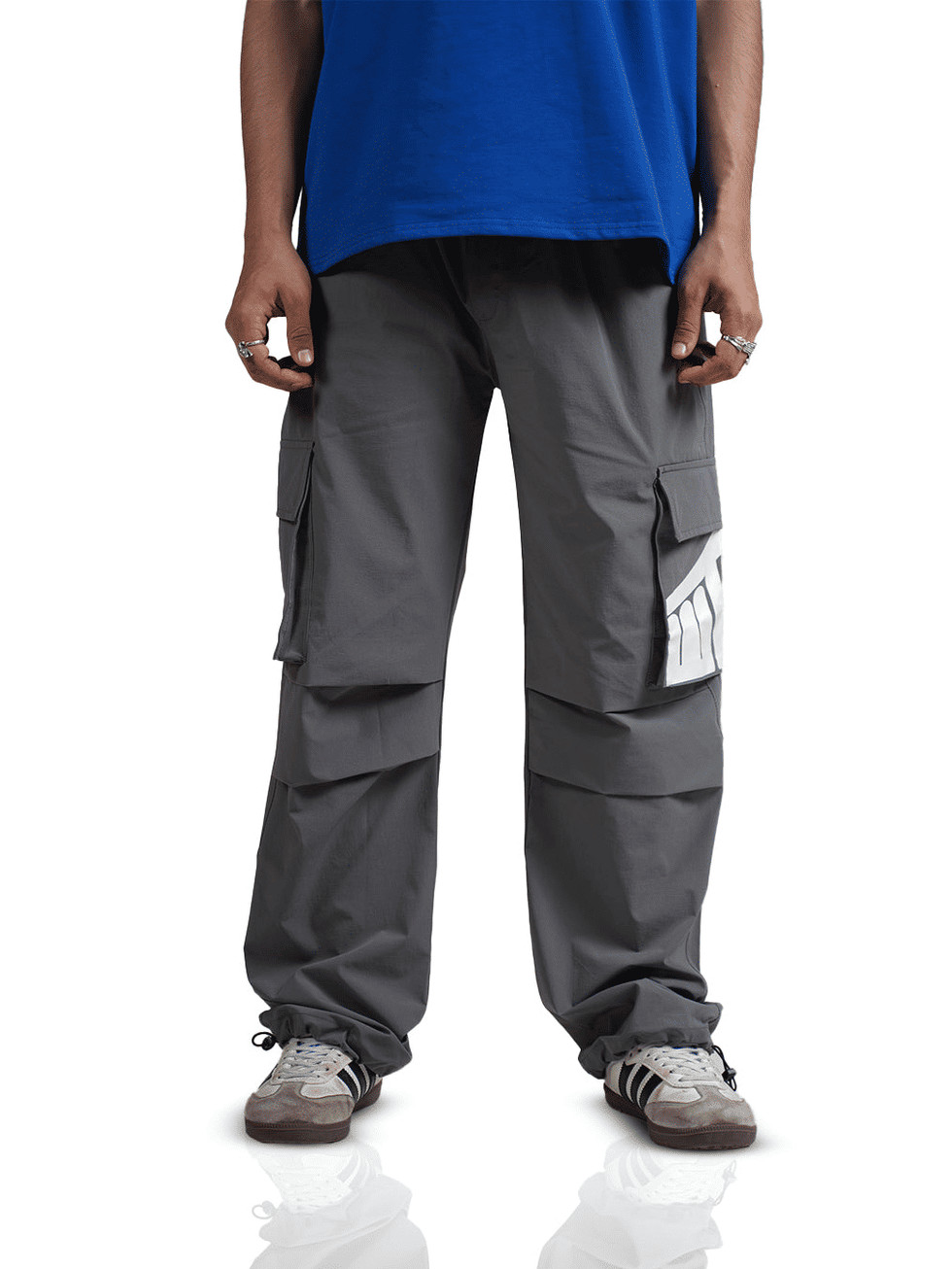 Grey Parachute Pants with Elastic Waist for Relaxed Everyday Style