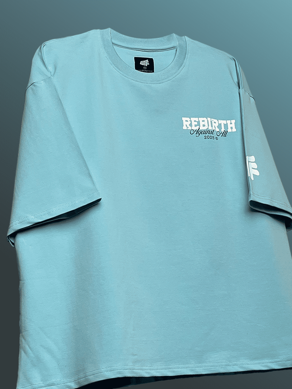 Rebirth Heavyweight Blue Boxy Fit T-Shirt With Graphic Print