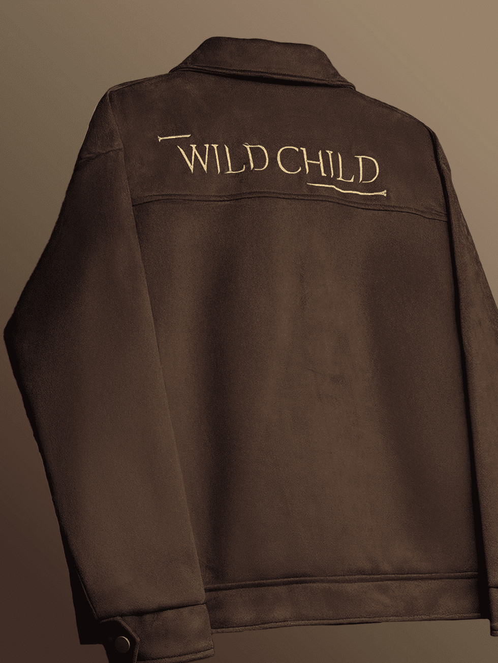 Wild Child Brown Suede Jacket with Bold Graphic Print Detail