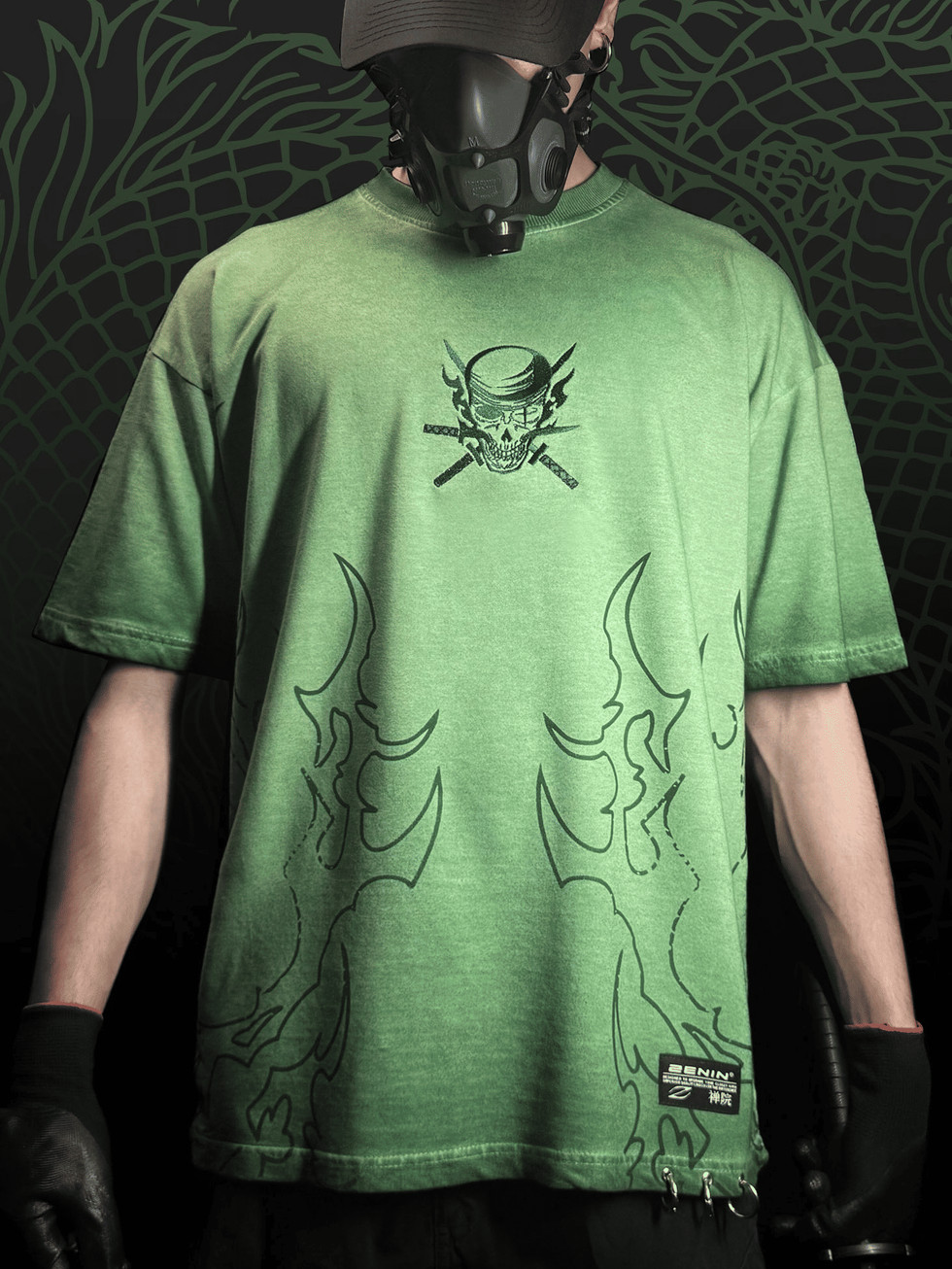 Zoro Shadow Wash Oversized Cotton T-Shirt with Triple Rings